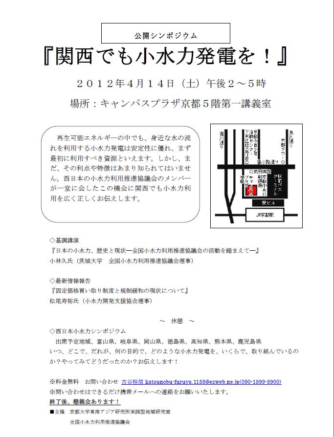 企画の名は、「小水力、さぁ関西で!」~関西広域小水力利用推進協議会設立