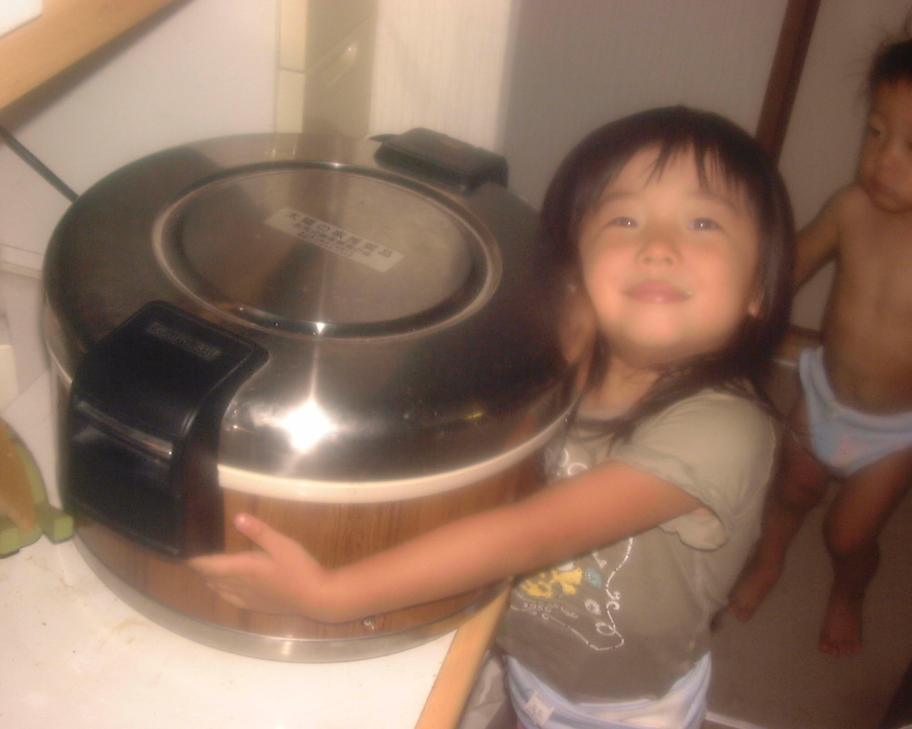 炊いたものは専用の業務用のような大きな圧力がまに入れて保温します。