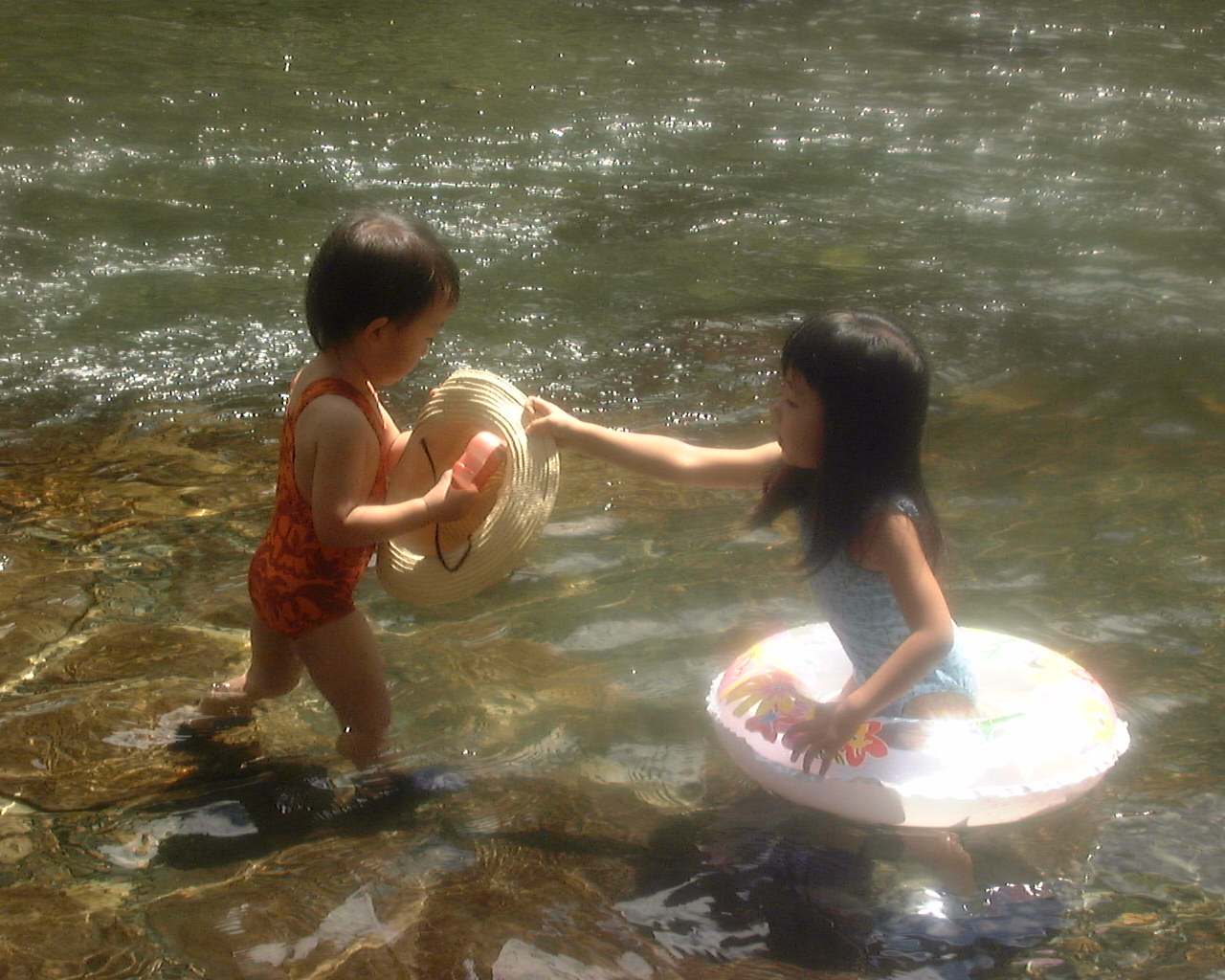 土や葉やタニシを材料におままごとをしたり、川で魚を捕まえて石でいけすを作って遊んだり、藪で冒険ごっこをしたり、積んでいるわらを踏んでこおろぎがあわてて出て来るのを友達と楽しんだり、さくさくと霜柱を踏んだり、降り積もった雪にどっと倒れこんで自分の型を作ったりして、わくわく遊んでいました。