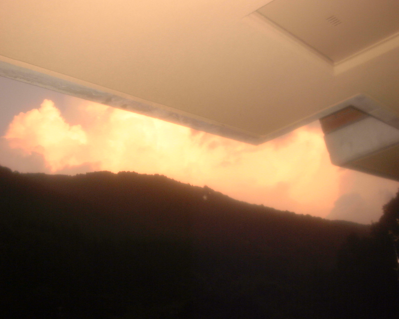 「みお!ねー、来てみてー!」夕焼け空が映ってオレンジ色に染まる雲がきれいで思わずミオを呼びました。