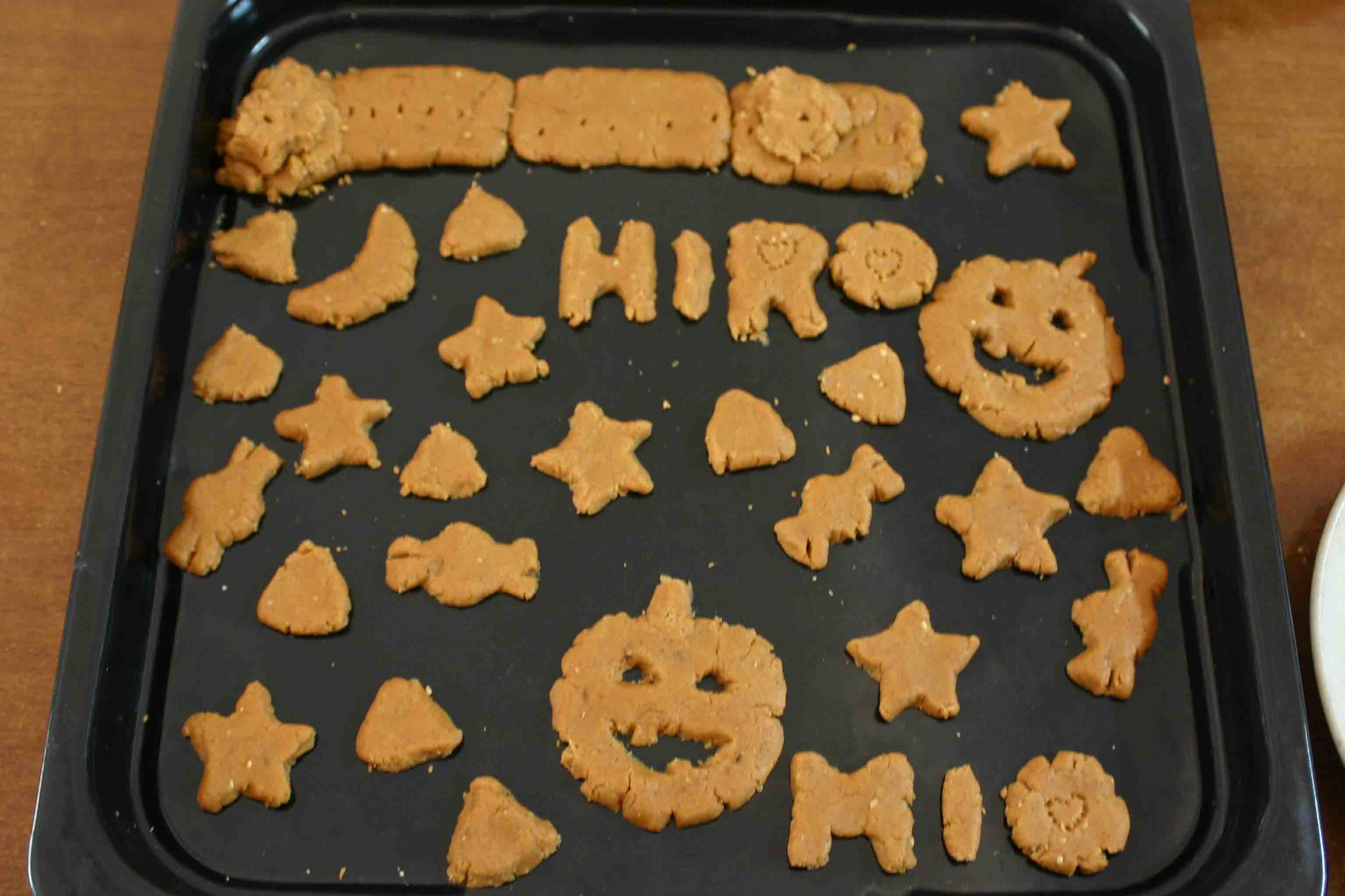 ハロウインにちなんで、かぼちゃおばけや星のかたちの「きなこクッキー」を焼いて今日のおやつにしようと思います。酵素玄米のおにぎりとお茶とミネラルドリンクを持って自転車で出発です。重くなってきた2人を乗せての坂道はつらいけど、がんばるぞー!