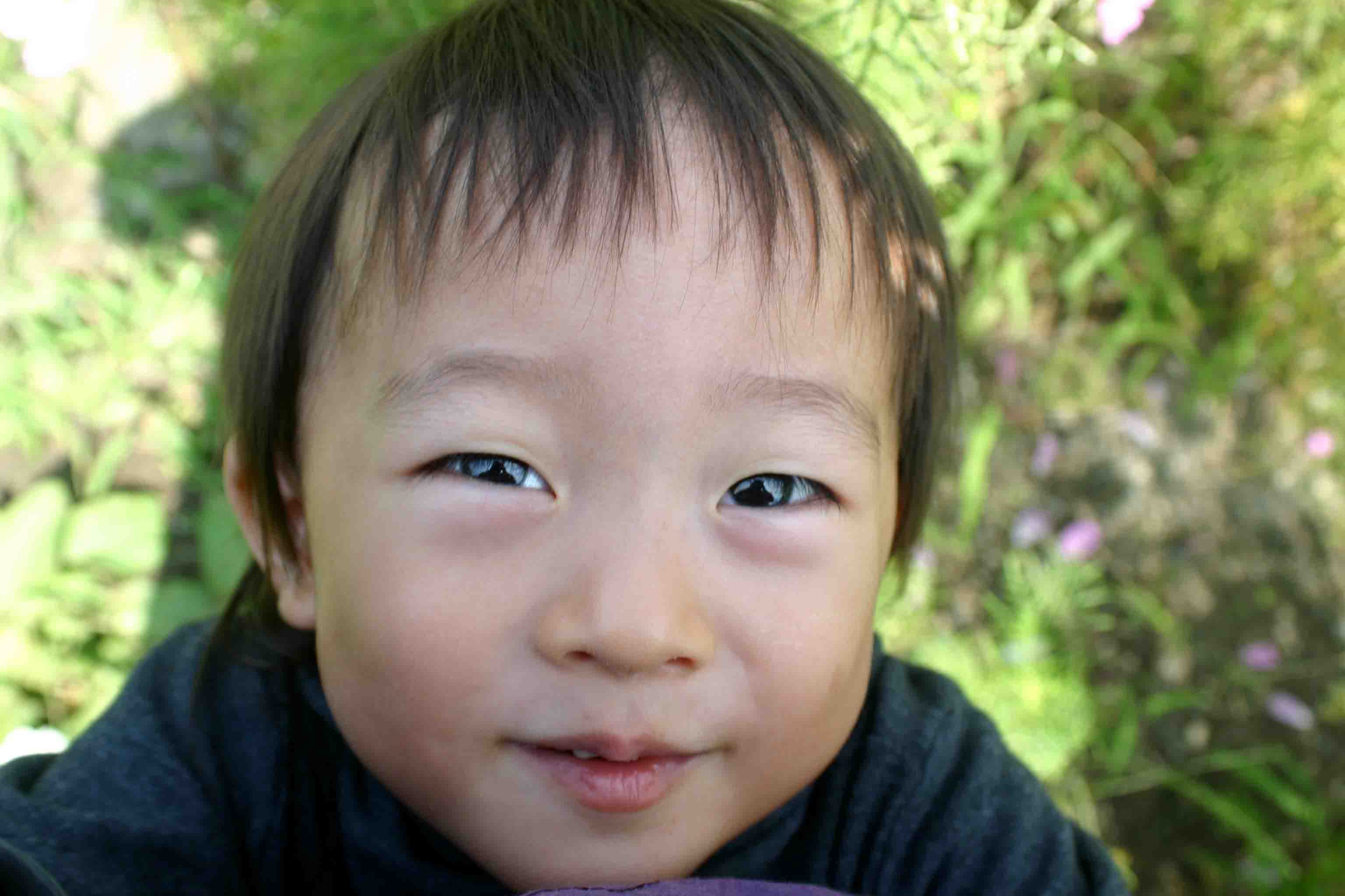 セルフタイマーではいポーズ。家族4人全員集合です。