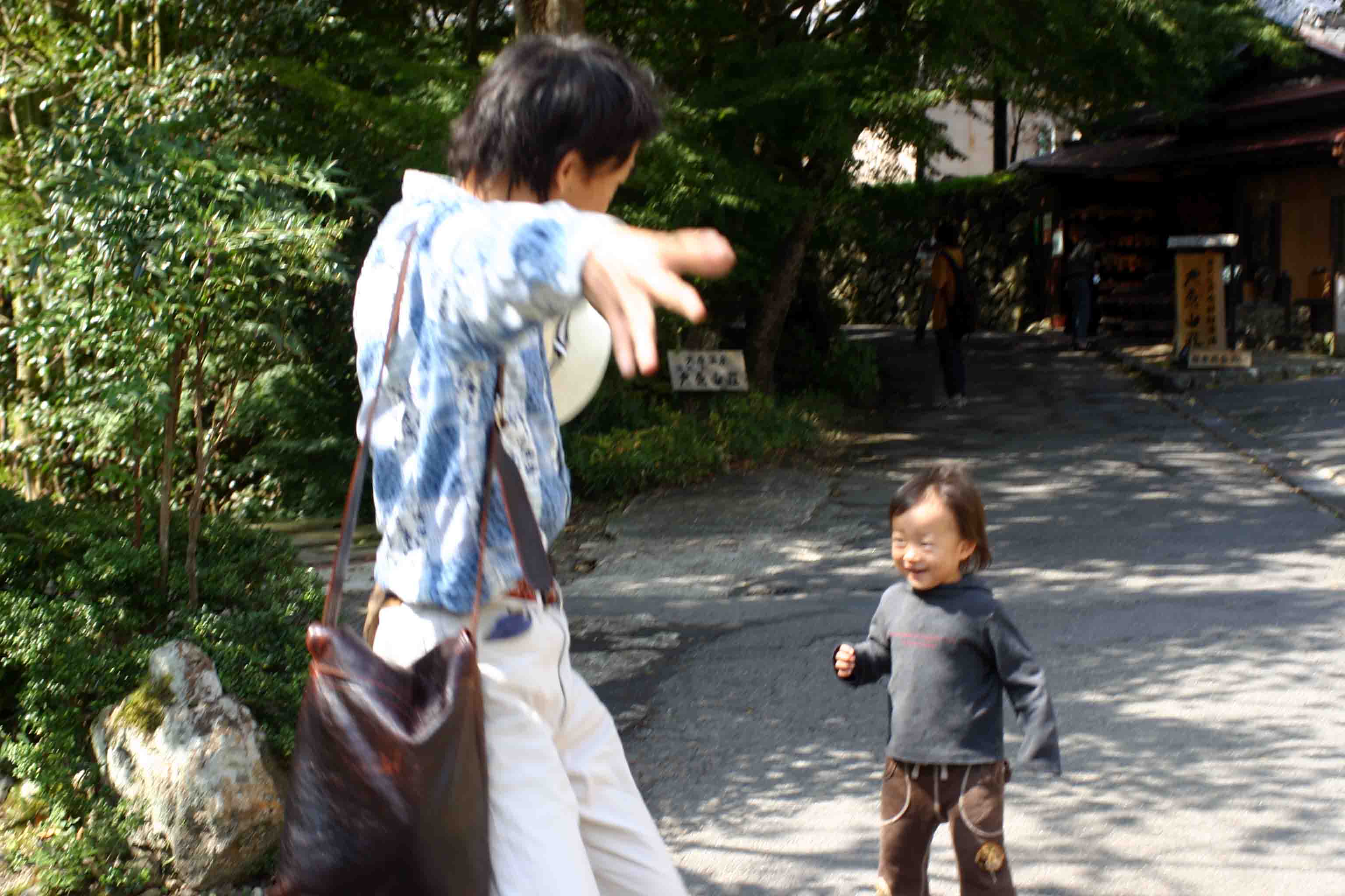 行く道々もかくれんぼをして遊ぶお父さんと子供たちです。