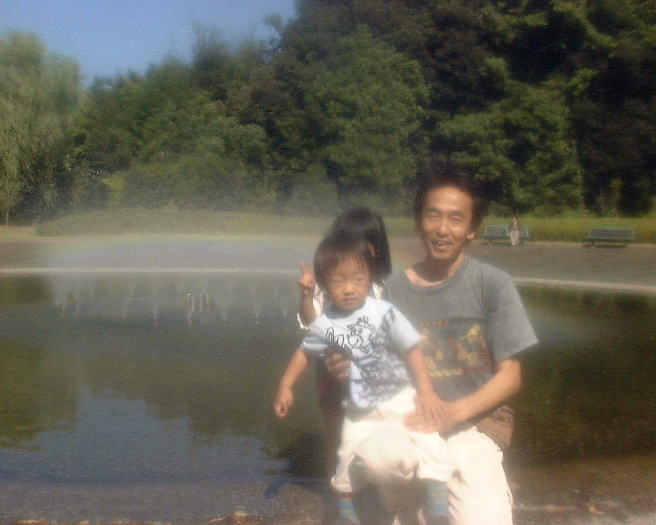 芝生の所に行くとヒロヒトが「くつぬいで!」と言うので「解った!」と私も裸足になってみます。「すこしちくちくするね。ひんやりしてるね。気持ちいいね。」ヒロヒトと感覚を共有します。しばらく行ってヒロヒトがペタンと草の上に座ります。「おかあさんすわって。」私も座ってみます。「草のにおいがするね。お茶のにおいみたい。」ヒロヒトがごろんとなって「ねころんで。」と言うのでわたしも寝転んでみます。「まぶしい!」あわててハンカチを出して顔の上にかぶせるとすぐに、ヒロヒトが私のおなかに乗ってきてハンカチをとってしまいます。「もうやめて!」ヒロヒトはわかっていていたずらをします。まだ3歳にならないヒロヒトにずっとリードされてからかわれて、なんだか不思議な感じがしました。