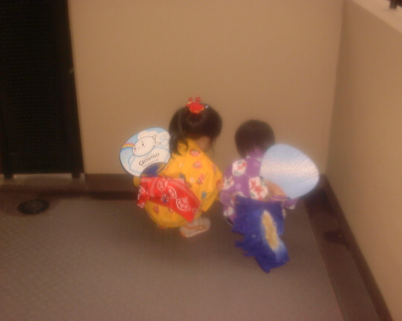19日の土曜日は地域のお祭りでした。子供たちは浴衣を着ておおはしゃぎ。