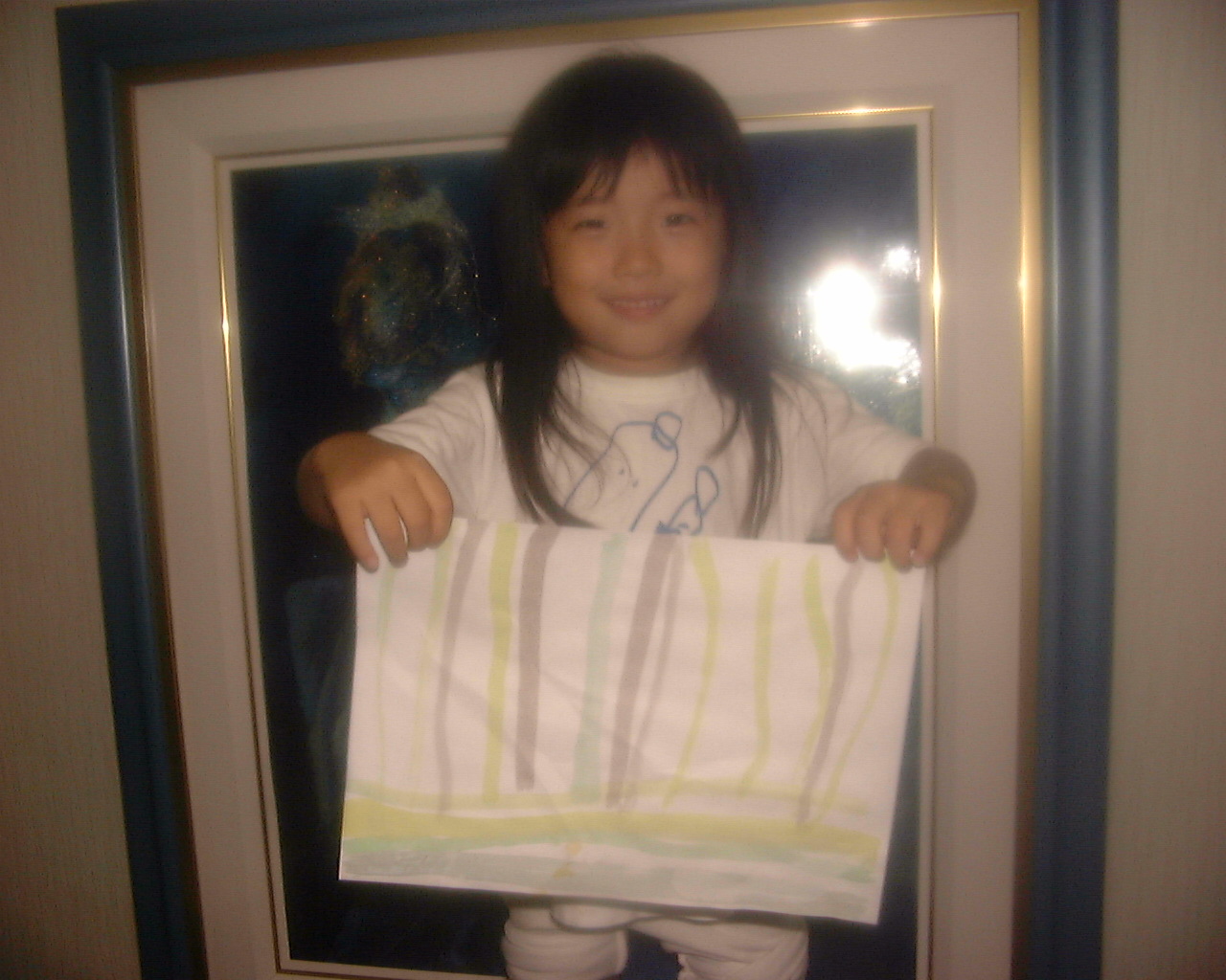 「みて!みて!」作品が完成して満足そうなヒロヒト。