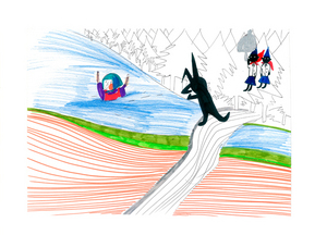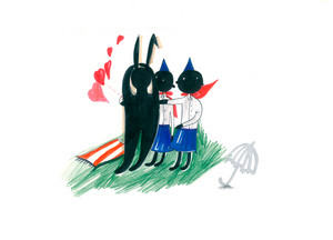 *最初の絵に登場するのは、おばあちゃん(自然の象徴)と黒いウサギ(テクノロジーの象徴)とジョバンナ(スピリットの象徴)です。